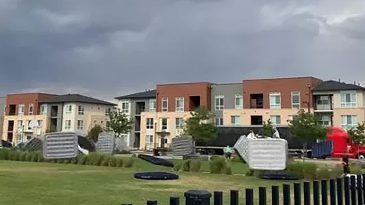 ¿Carrera de colchones? Así es como las ráfagas de viento los llevan de un lado a otro en un parque en Denver