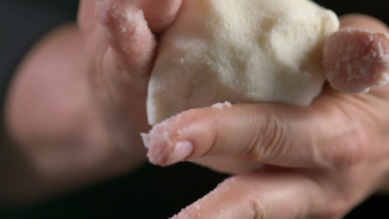 2- Mezclar y dejar reposar. Picar las papas en bastones y remojarlas en agua.