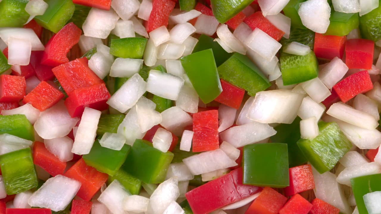 3- Sofreír ajo, cebolla, los pimentones, el tomate.