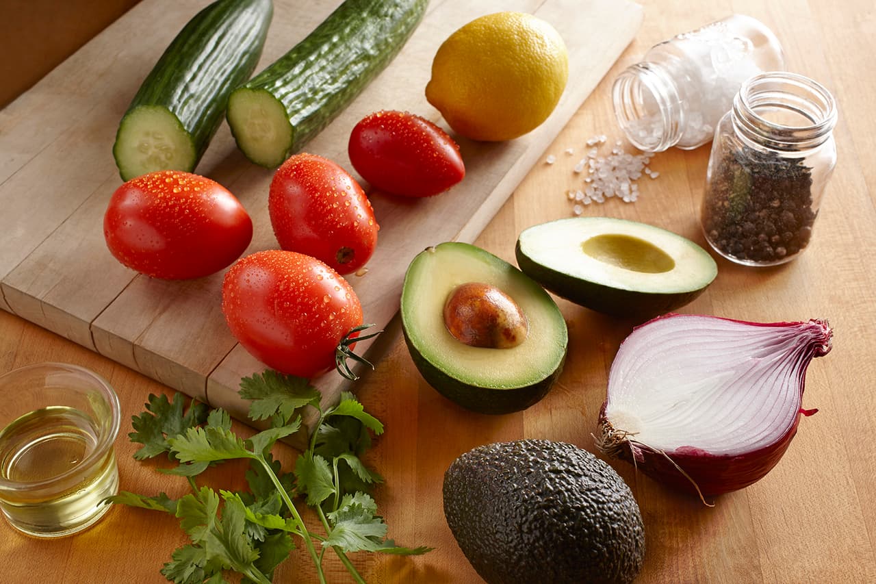 9- Picar lechuga, cebolla morada y aguacate para los tacos.