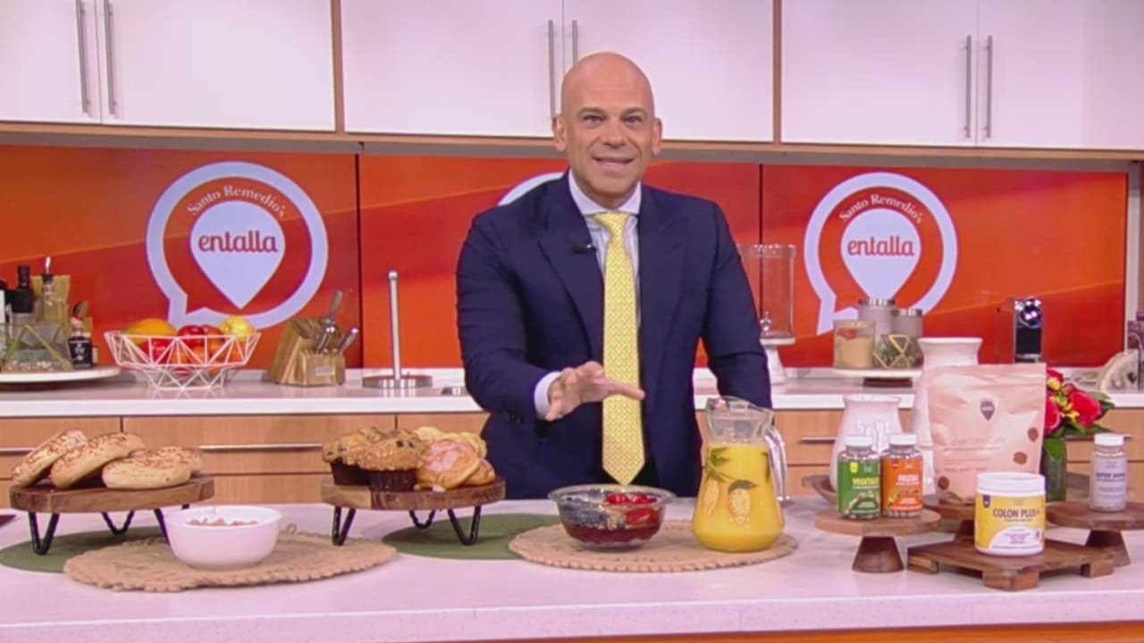 Para mostrar las peores comidas que podemos tomar a la hora del desayuno porque disparan la azúcar y provocan el subir de peso, Dr. Juan trajo bagels, cereales, muffins y jugo de frutas, explicó cómo se disfrazan de saludables y recomendó Santos Remedios que sirven para alimentarse en las mañanas.