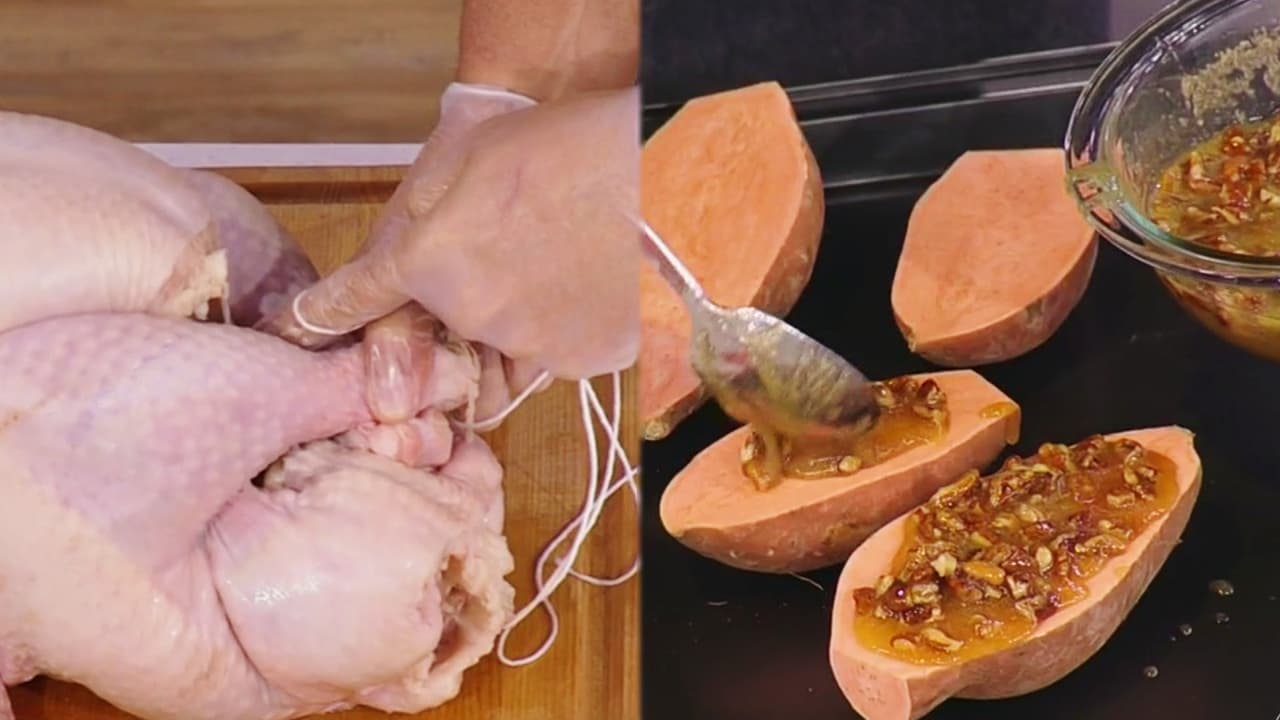 En tiempo récord, nuestro Chef Yisus nos compartió cinco trucos para que la cena de Thanksgiving sea todo un éxito. Aprende cómo atar correctamente el pavo, cómo saber que ya está bien cocido, a que la pechuga no quede seca, a preparar rápidamente un acompañamiento de camote y a hacer un postre en un dos por tres.