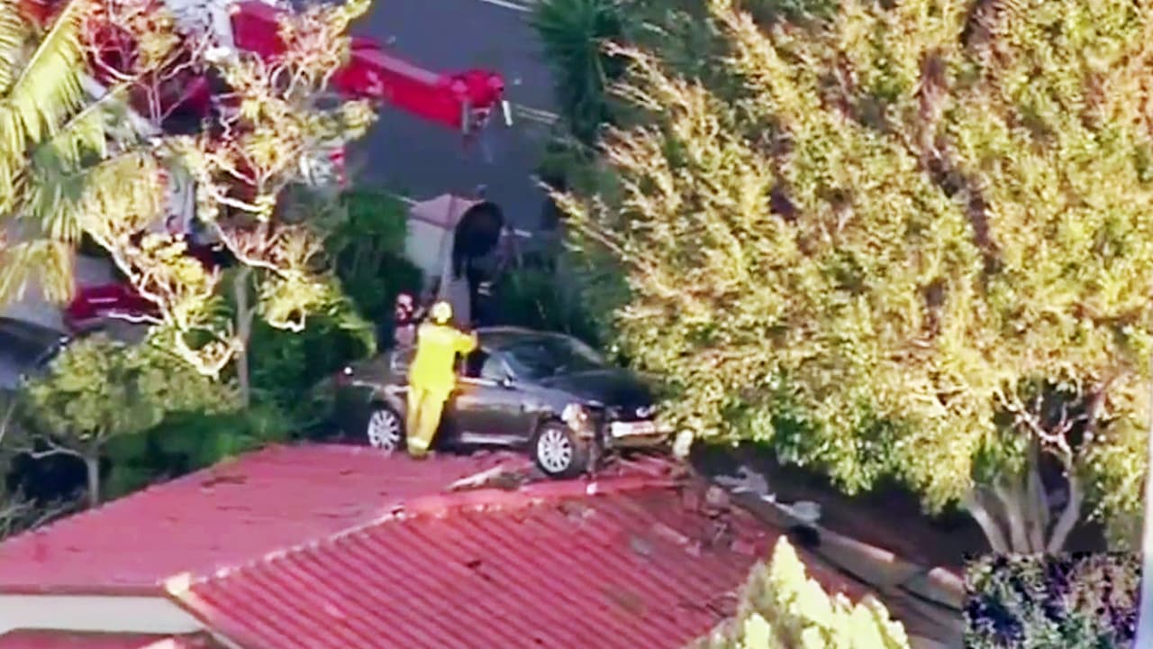 Un inquietante enigma rodea la aparición de un auto sobre el techo de una casa en California.