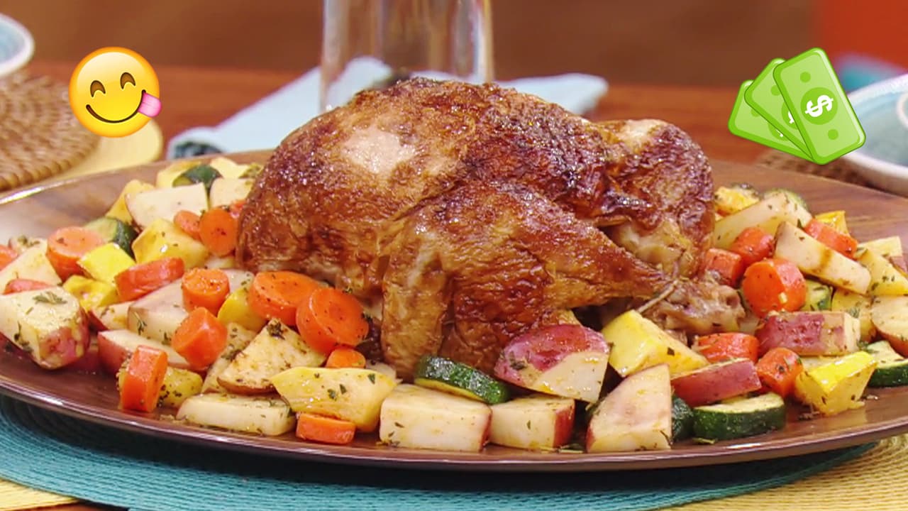 El Chef Jesús, siempre pensando en nuestra economía, nos demostró cómo podemos servir una gran cena de pollo al horno con vegetales para 4 personas, ¡y por menos de 10 dólares!