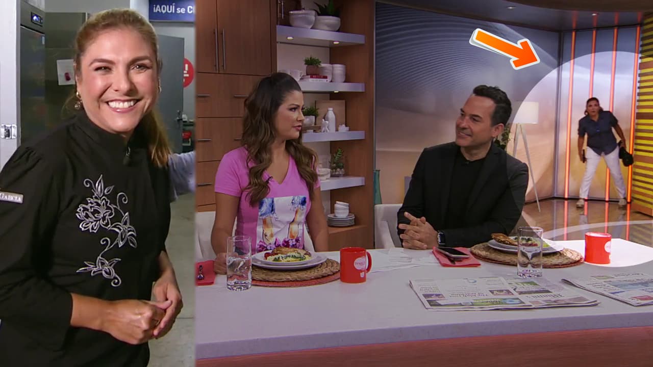 Momentazo del día: tras enviar a corte comercial, nuestros conductores se percataron que la presentadora de 'Delicioso' se atravesó en la toma y se dio cuenta en el acto. Con una cara de sorpresa, la chef Lorena seguramente pensó que ya no estábamos en vivo.