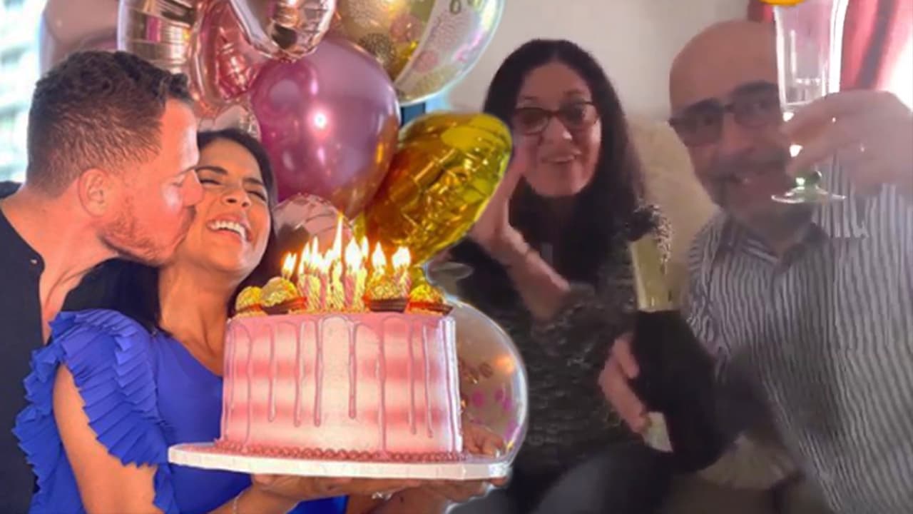 Con pastel, vela encendida y desde Italia, la familia de Francesco sorprende a Francisca Lachapel en sus 31