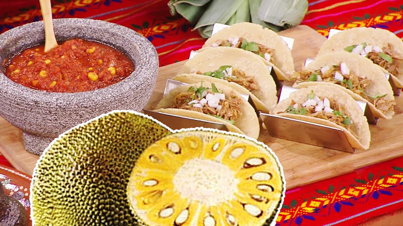El chef vegano Eddie Garza nos invitó a probar esta receta que sustituye la carne de res o puerco por una opción inusual pero deliciosa: pulpa de yaca, también conocida como 'jackfruit'.