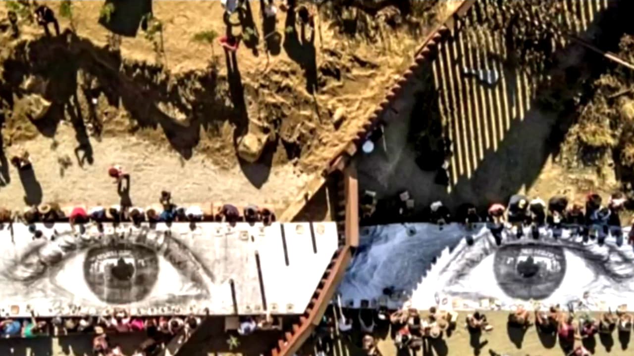 La imagen creada por el artista francés Jean Renécon es la mirada de un menor de 1 años de edad, y gira en torno al drama de la inmigración y lo que refleja la construcción de un muro fronterizo.