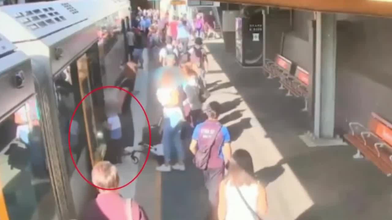 Estas imágenes captadas en Australia muestran la caída de un niño en el espacio entre un vagón y el andén cuando trataba de abordar. La gente rápidamente se moviliza para evitar que el tren se ponga en movimiento, y por fortuna lo logran.