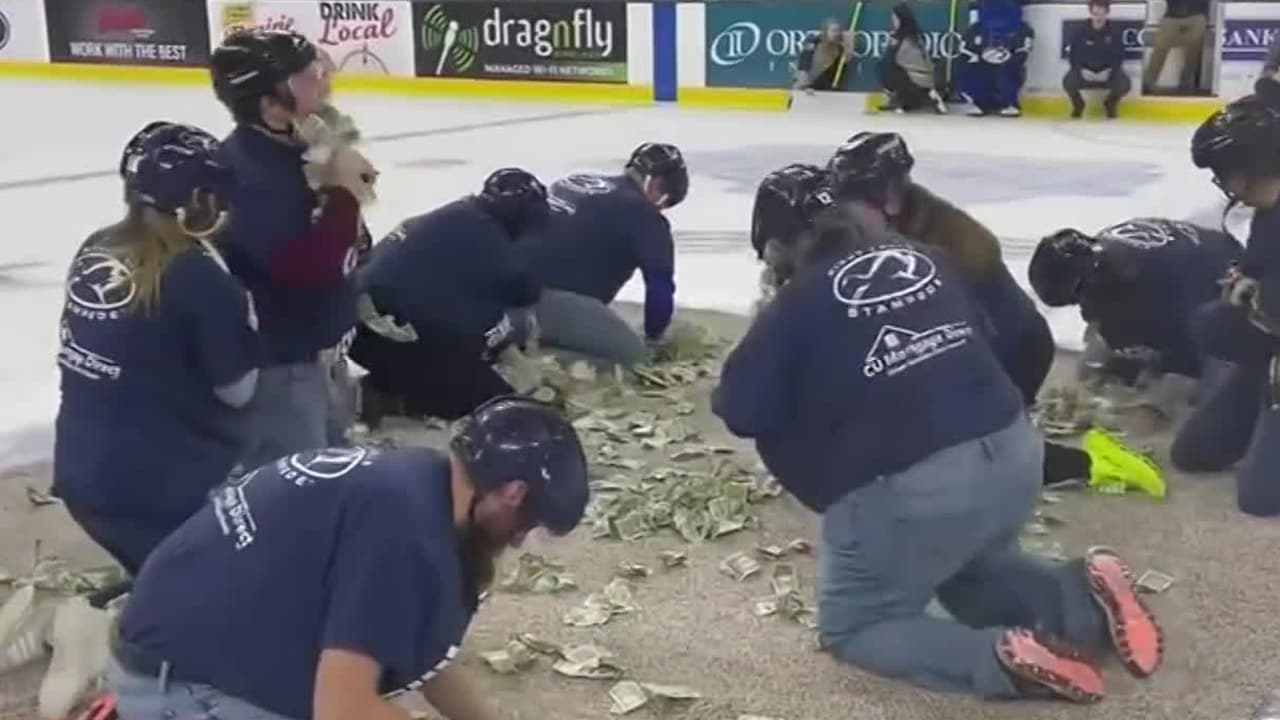 Profesores de dos escuelas de Dakota del Sur se enfrentaron en un concurso que ha sido calificado como humillante luego de que en medio de una cancha de hockey se pusiera dinero en efectivo y los educadores tuvieran que competir para tomarlo con el fin de comprar útiles escolares para sus aulas.