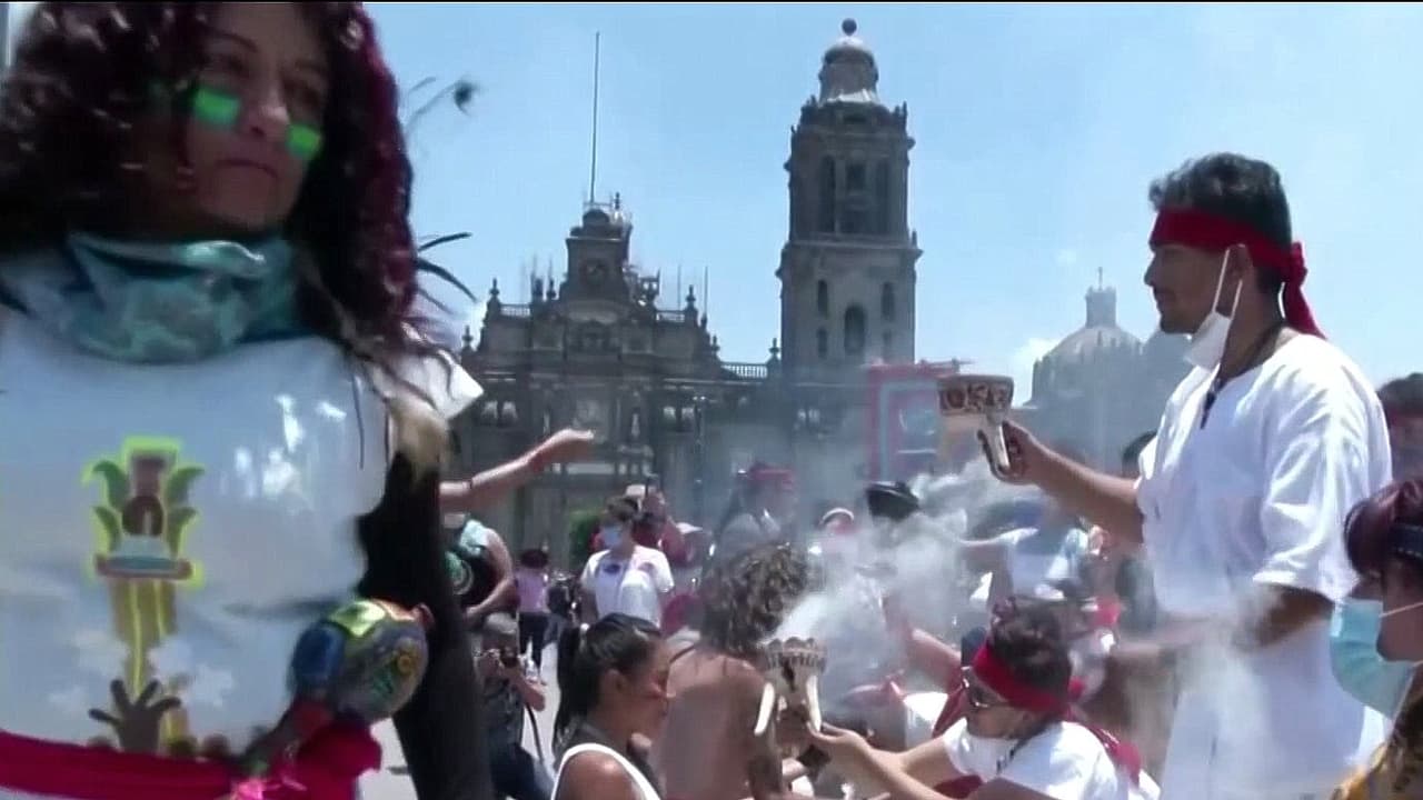 Con música, danza y rituales típicos de una ceremonia azteca, varios danzantes se congregaron en la plaza del Zócalo de la Ciudad de México con el objetivo de conmemorar el 696 aniversario de la fundación de la ciudad perdida de Tenochtitlán.