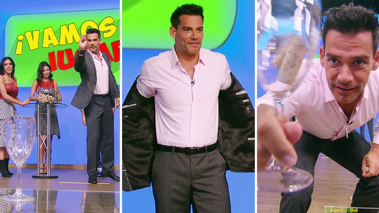 El galán chileno se las vio en aprietos al intentar meter un corcho en la copa con un tiro a distancia, ¡pero tuvo que mejor su puntería si no quería terminar desvestido enfrente de nuestras chicas!