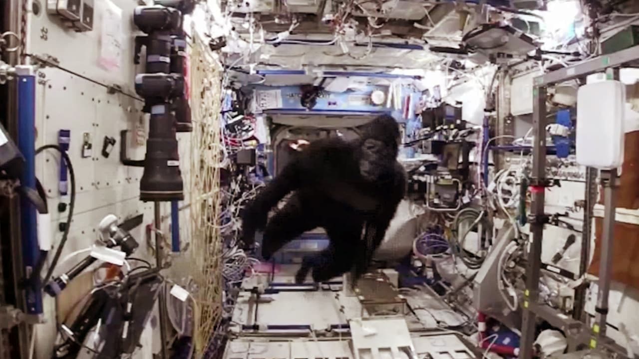 Este video muestra a un astronauta disfrazado de gorila persiguiendo a otro en la Estación Espacial Internacional.