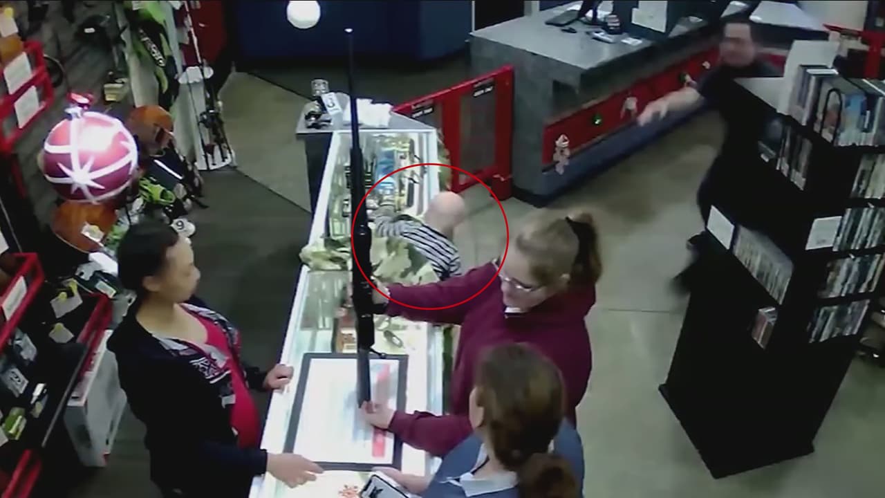 Dejó a su bebé sobre el mostrador para agarrar un arma y por poco ocurre una tragedia