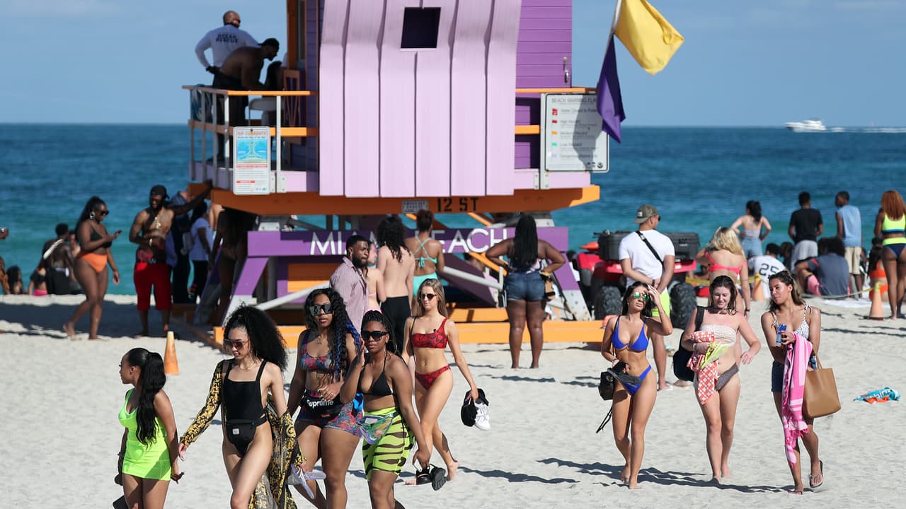 Descontrol en playas de Miami y falta de medidas de sana distancia en el primer fin de semana de vacaciones