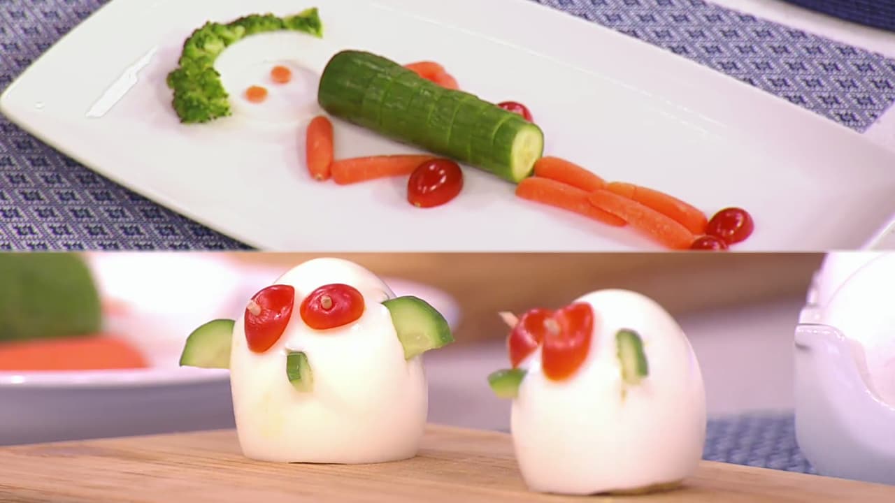 A veces como padres es difícil lograr que nuestros hijos coman verduras, sobre todo si su apariencia no les parece apetitosa. Por eso nuestro chef nos enseñó cómo preparar estos bocadillos saludables en los que las frutas y vegetales se vuelven divertidos para gustarles a los más pequeños.