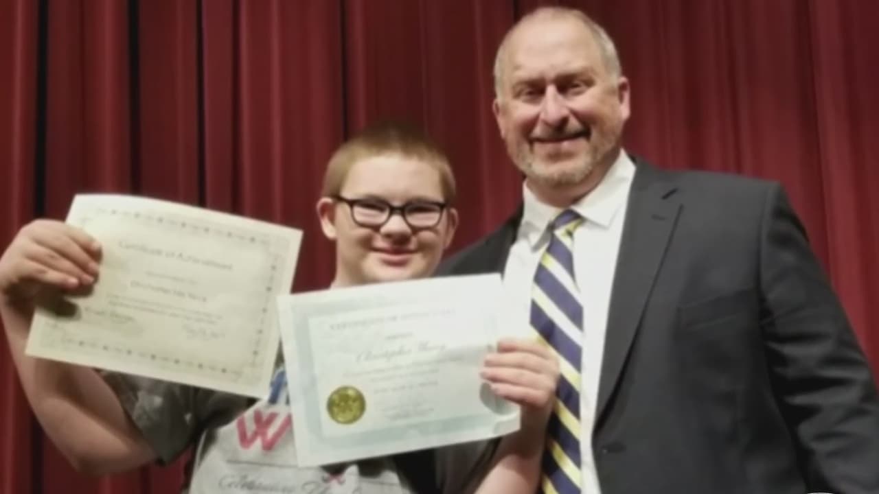 El emotivo momento en que un estudiante con síndrome de Down recibe el premio a la bondad en su escuela