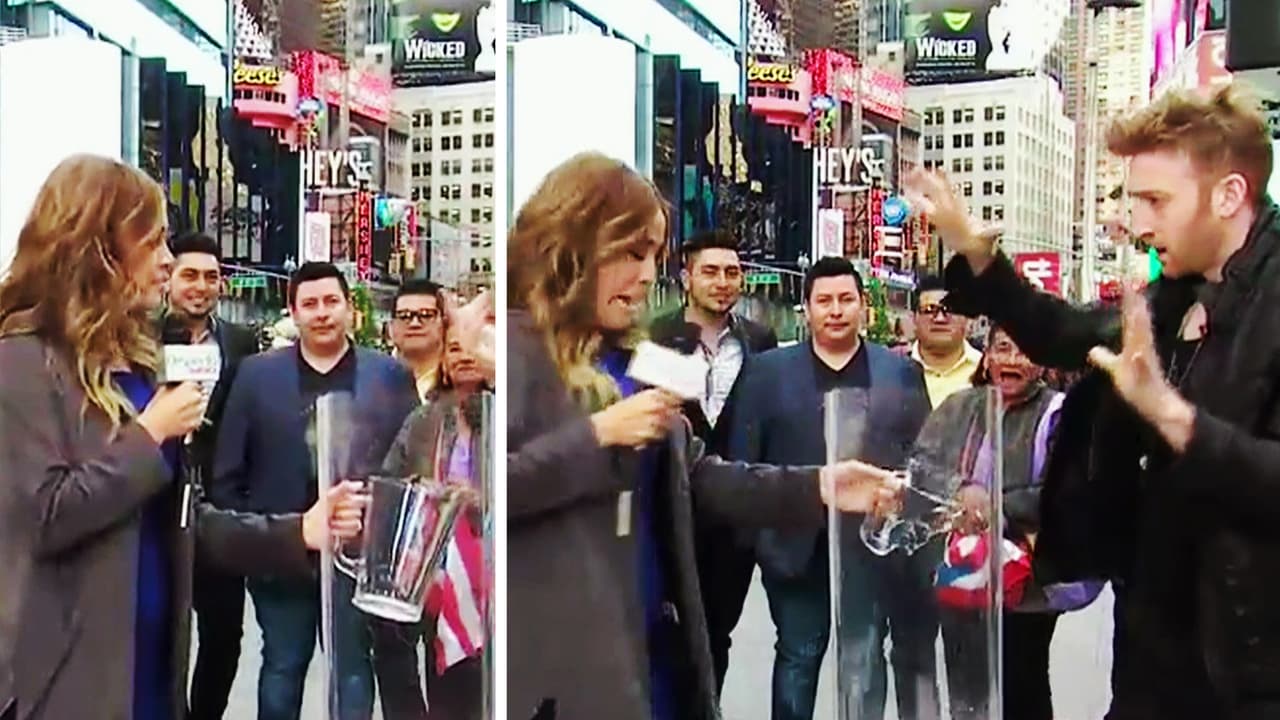 Nuestra Karla se convirtió en la bella asistente del ilusionista Elliot Zimet en su visita a Times Square, donde él demostró el enorme poder que su energía puede causar.