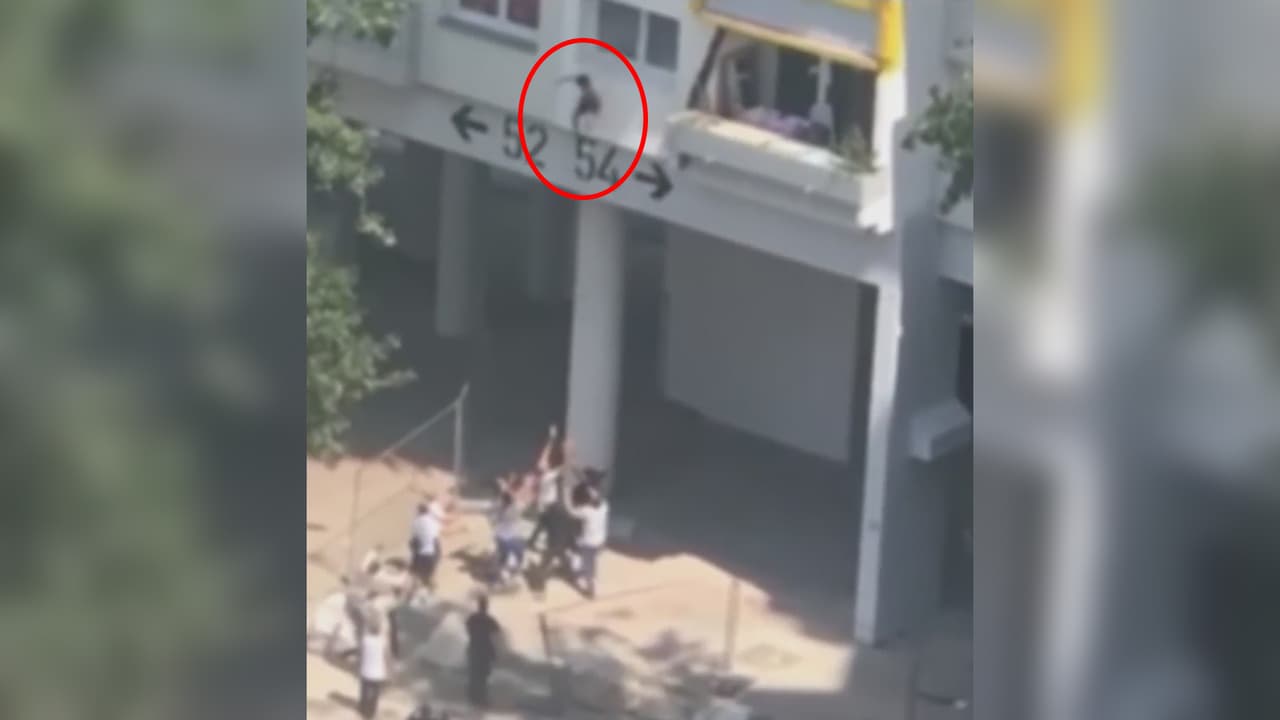 El impactante momento en que dos niños saltan al vacío desde un apartamento en llamas
