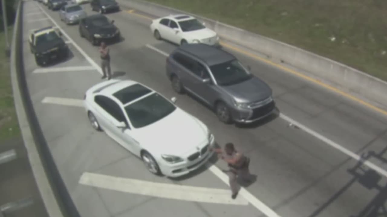 El impactante momento en que un conductor acelera y atropella a un policía en Florida