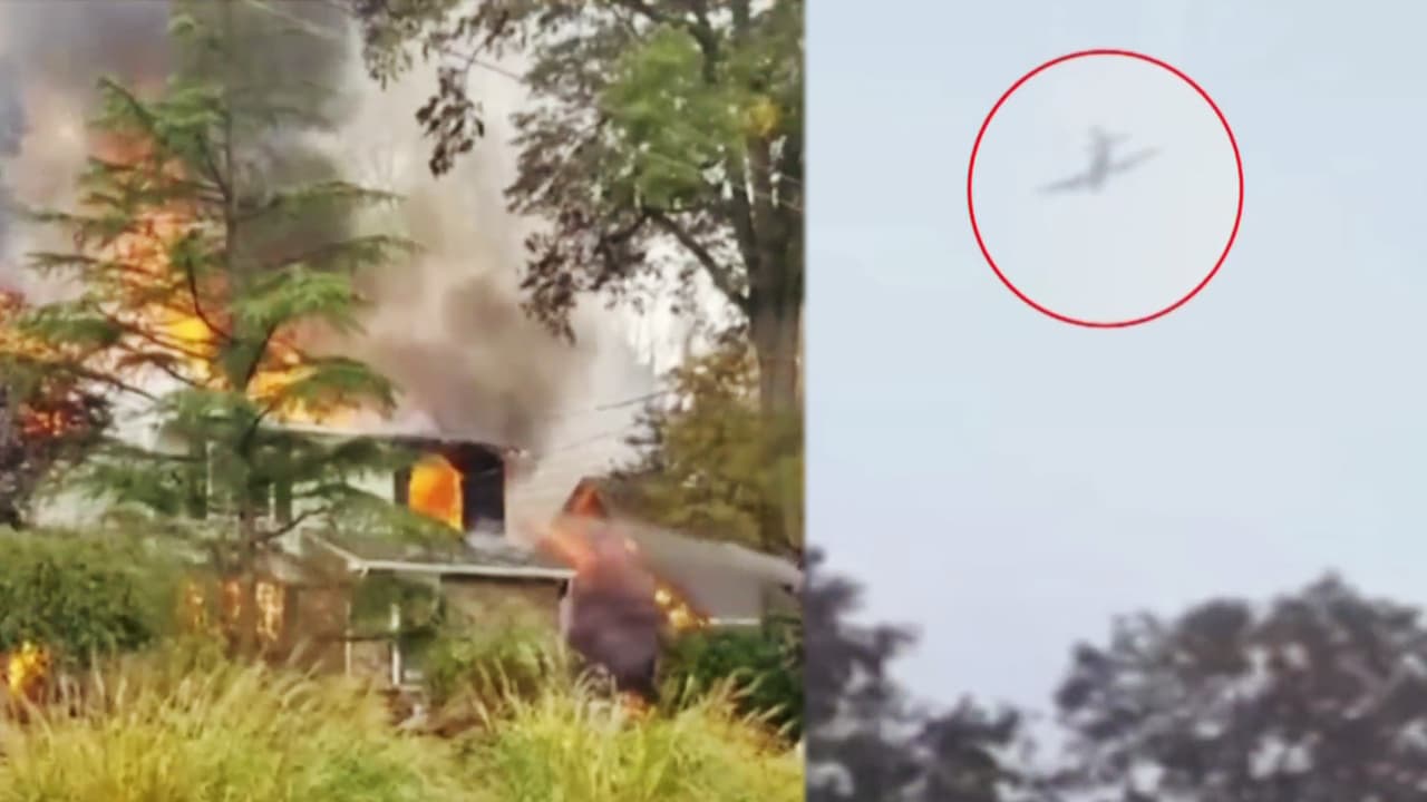 El momento en que una avioneta se desploma incendiando un vecindario en Nueva Jersey