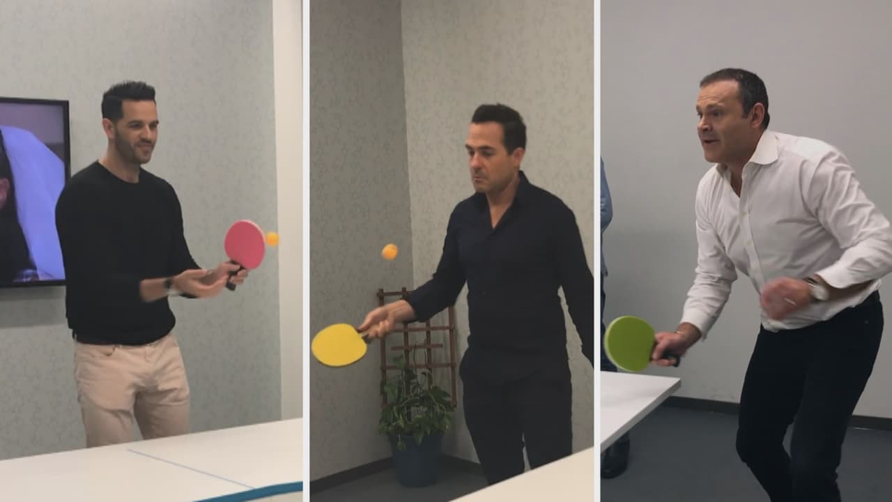 Sorprendimos a los presentadores detrás de cámaras, jugando un torneo de 'pimpón' (con apuesta incluida). ¿A qué equipo le habrá tocado pagar el almuerzo?