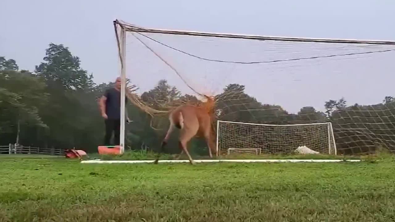 En video: así fue como un buen hombre rescató a un venado atrapado en una portería