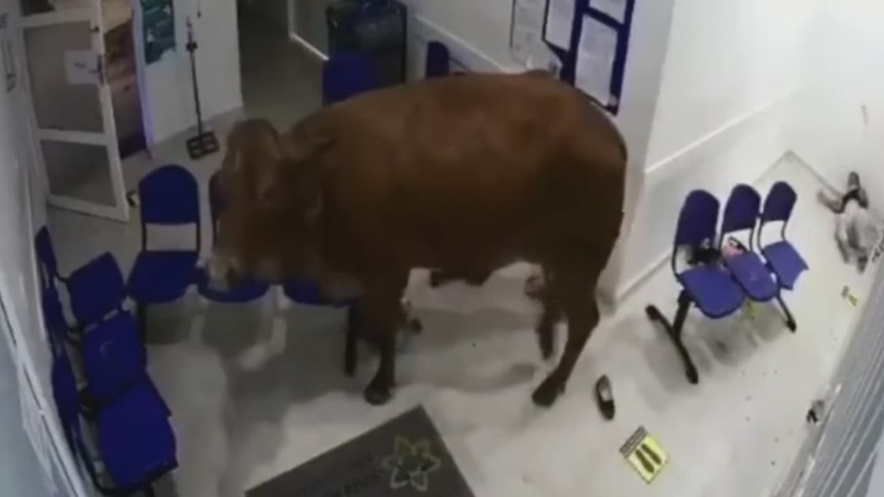 En video: el insólito momento cuando una vaca irrumpe en un centro médico en Colombia