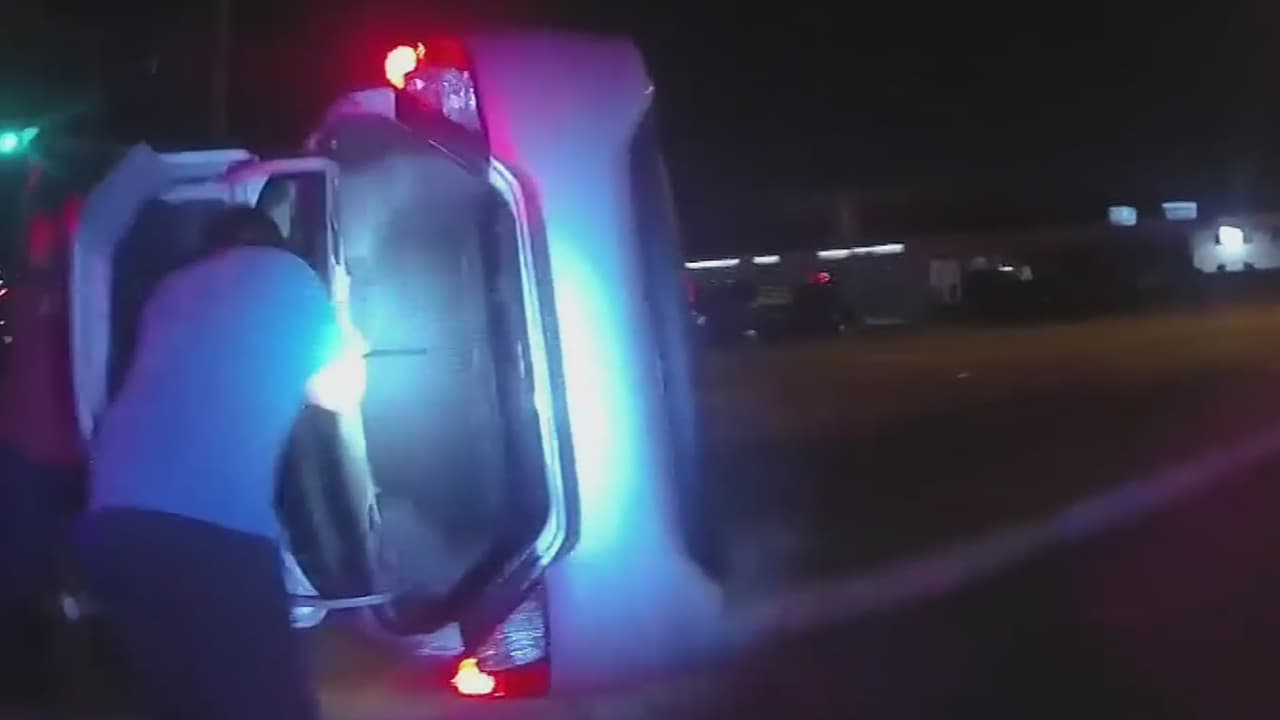 En video: policías rompen cuidadosamente el cristal de un auto volcado para sacar a tres niños en Texas