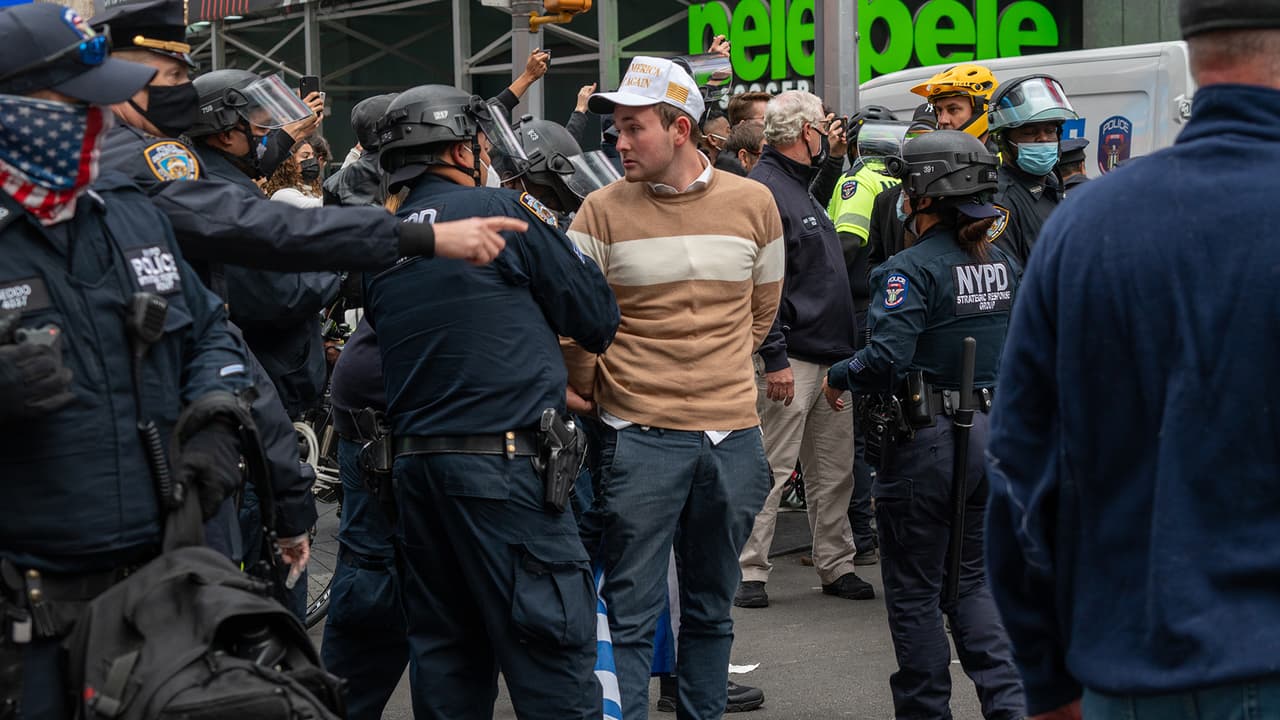 Enfrentamiento entre manifestantes y un policía haciendo algo indebido: sube la tensión política en Nueva York