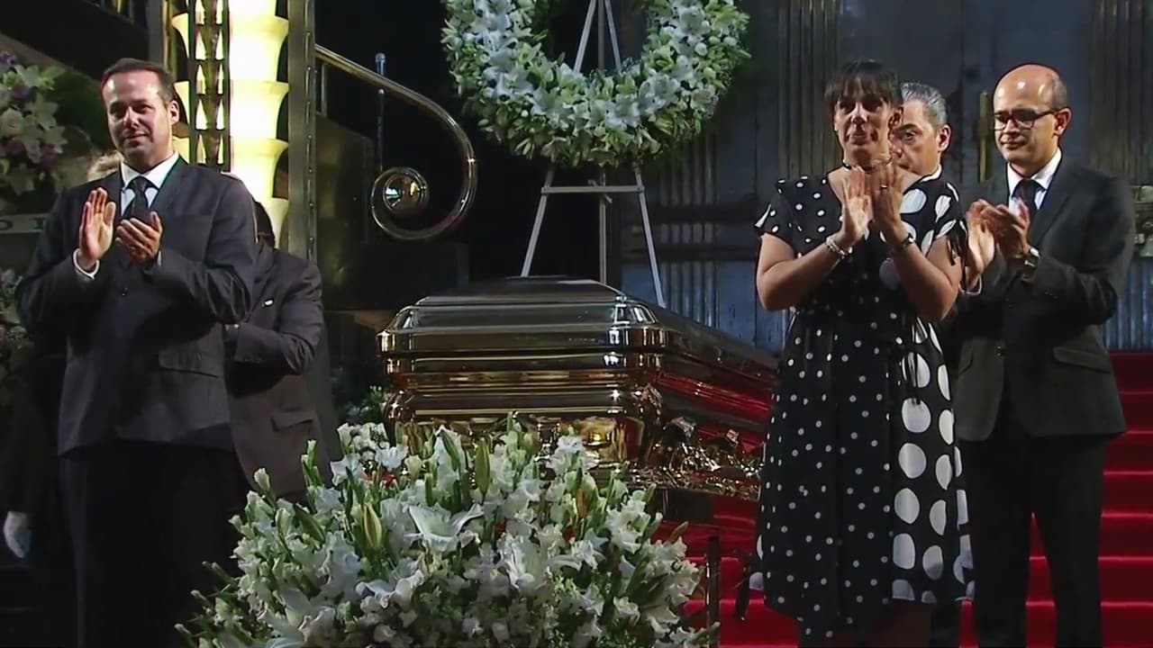 Escoltado por sus hijos, el féretro de José José es recibido con aplausos en Bellas Artes