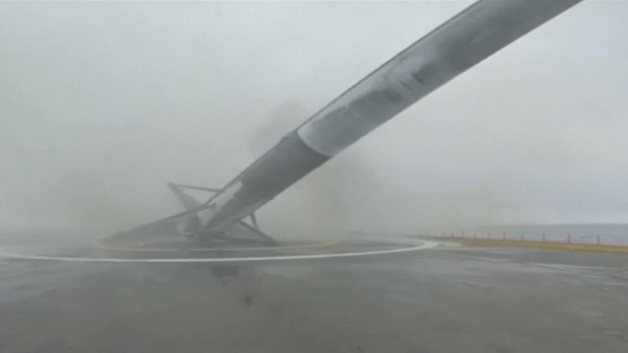 Al parecer una de las patas no logró acoplarse con la superficie, haciendo que la nave cayera sobre uno de los costados en el mar.