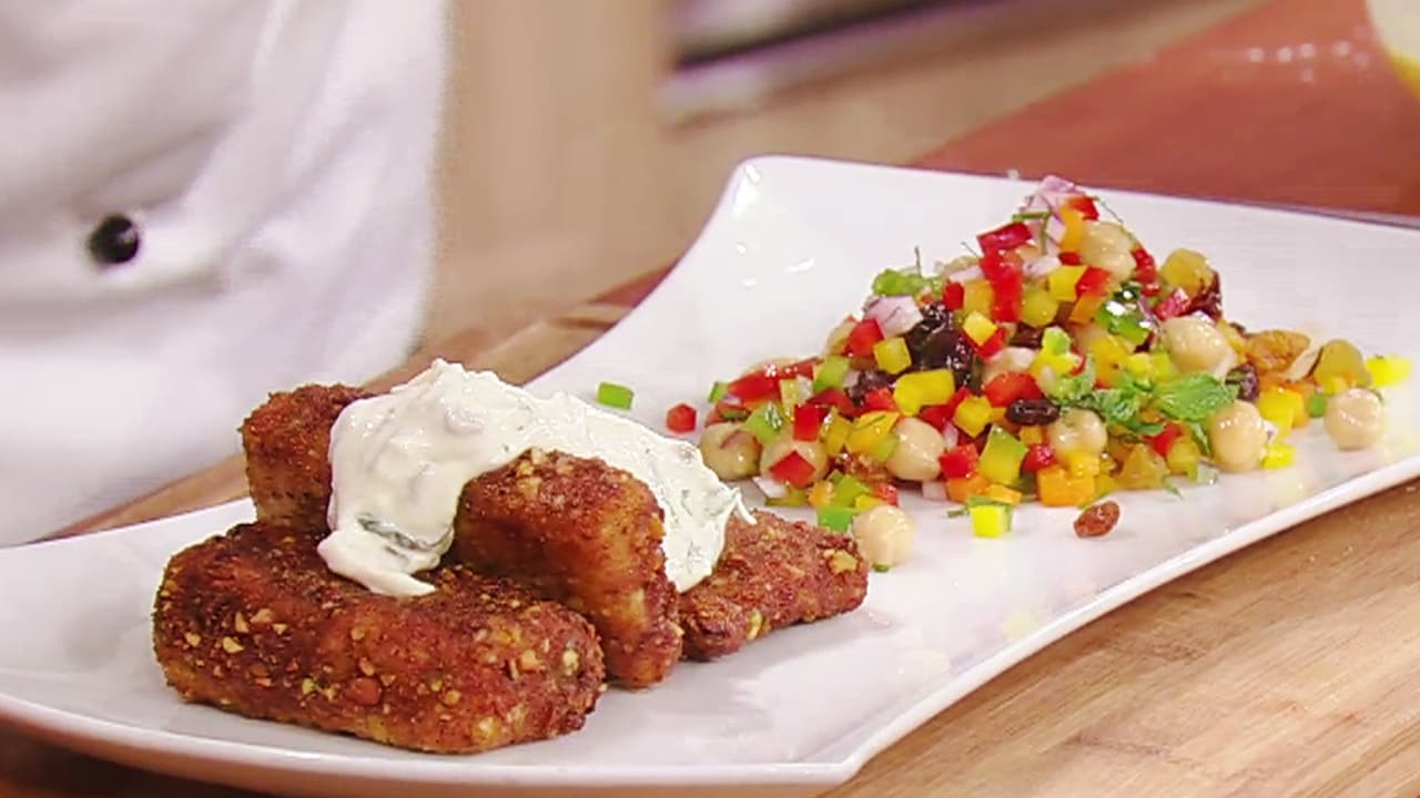 ¡Fácil, rápido y nutritivo! Pescado Empanizado con Ensalada de Garbanzos