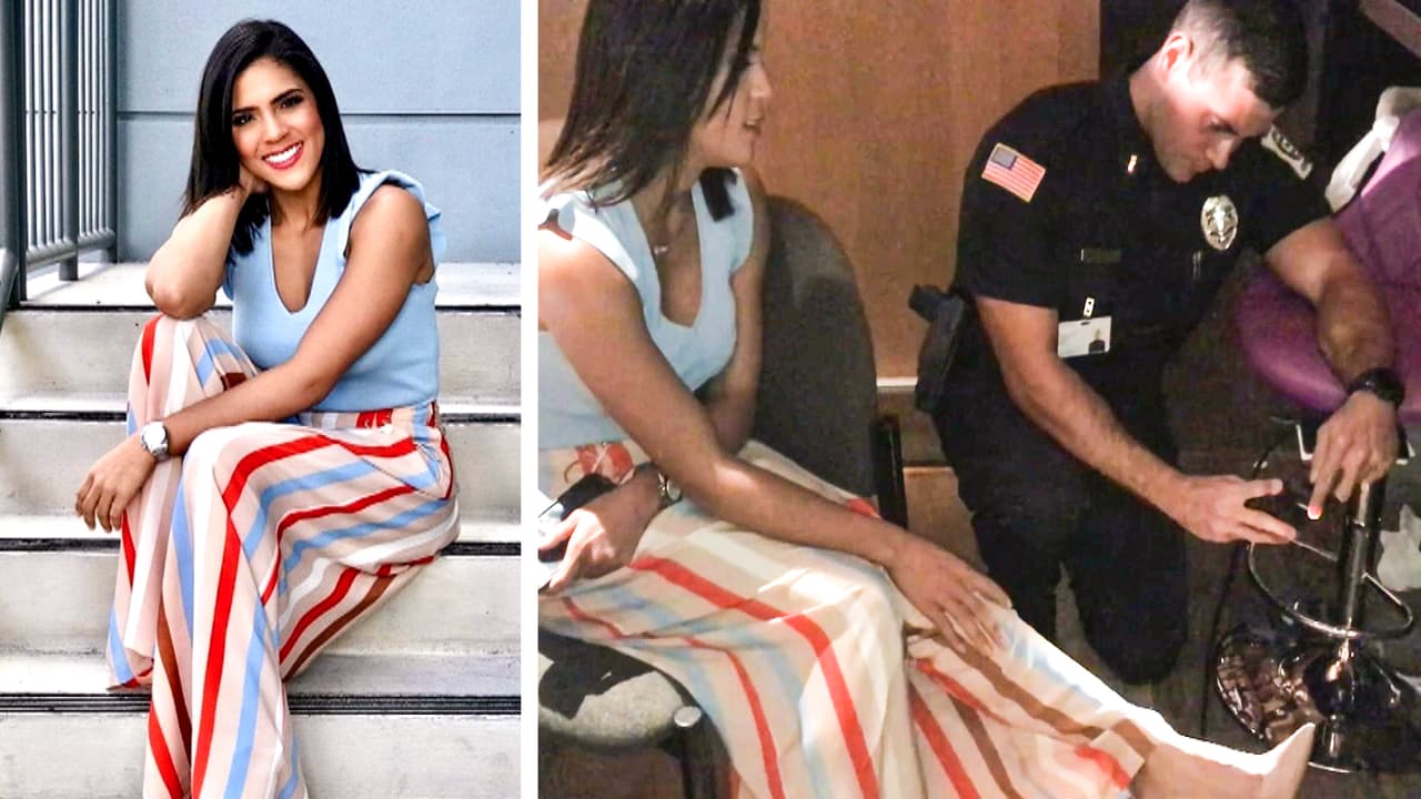 La presentadora se enredó con su pantalón y terminó en el piso. Mientras ella no podía con la vergüenza, sus compañeros se reían de su caída. Hasta seguridad llegó al sitio.