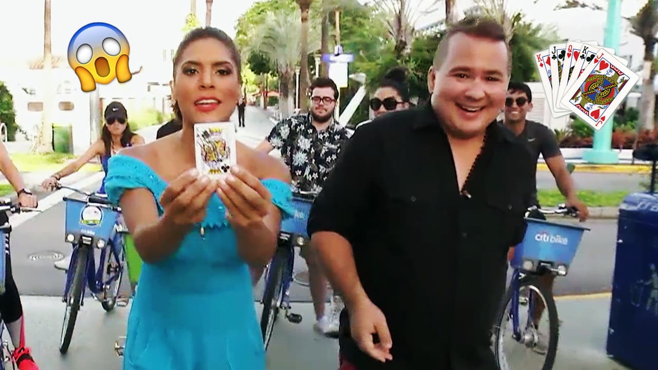 Paseando en bicicleta por Lincoln Road, Francisca se topó con el mago Dylan Ace, quien la dejó sin palabras después de hacerle un poco de magia callejera.