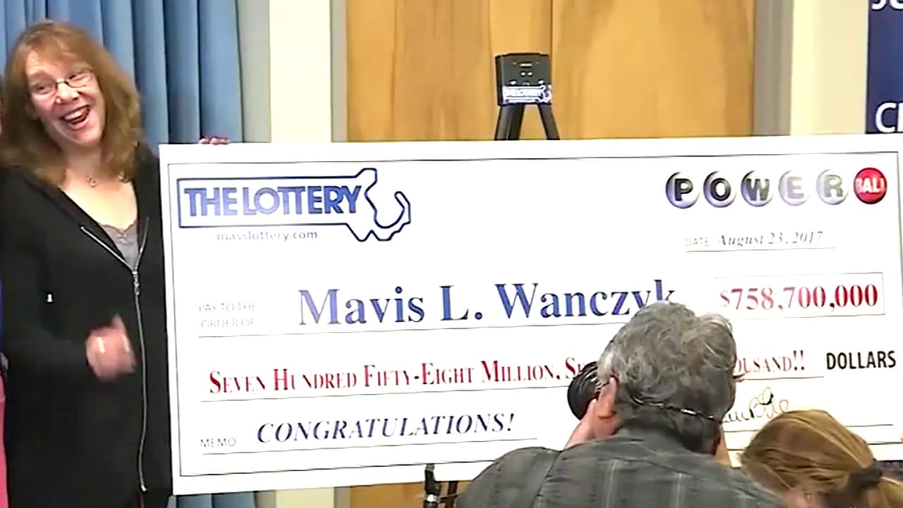 Luego de trabajar durante 32 años como enfermera de Massachusetts, Mavis Wanczyk de 53 años de edad, recibió su premio de 480 millones, con lo que pagará deudas y disfrutará de su fortuna.