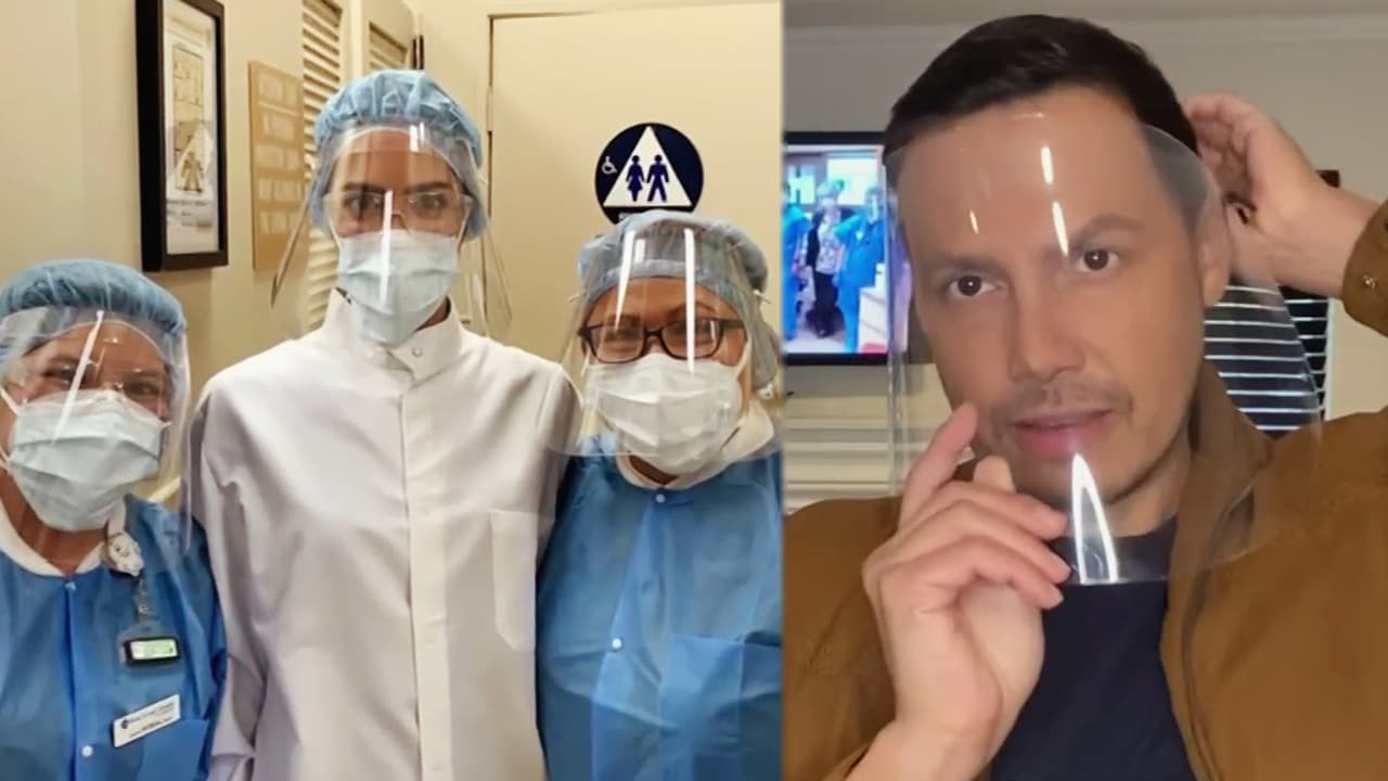Hispanos crean sistema con el que elaboran protectores faciales para donarlos a trabajadores de la salud