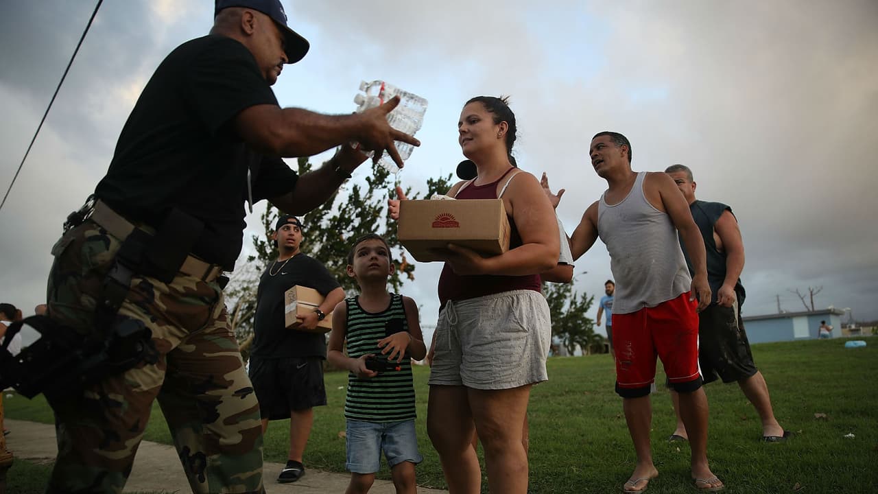 La mitad de la isla continúa sin servicio de electricidad, y aunque las autoridades han distribuido al menos un millón de comidas, todavía tienen muchos alimentos más por entregar.