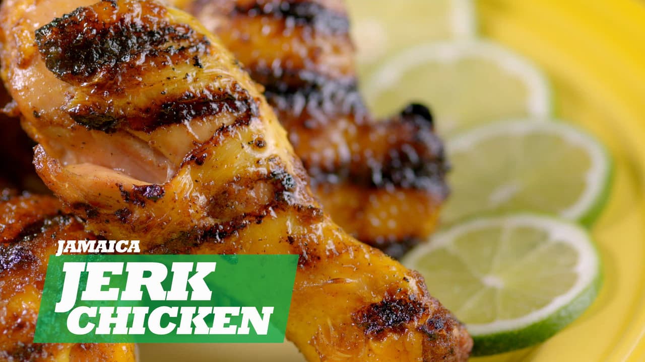 Jerk significa barbacoa jamaicana. Este pollo tiene un sabor complejo, entre dulce y picante. Está hecha a base de hierbas y especias. Se puede servir con arroz, frijoles o pasta.