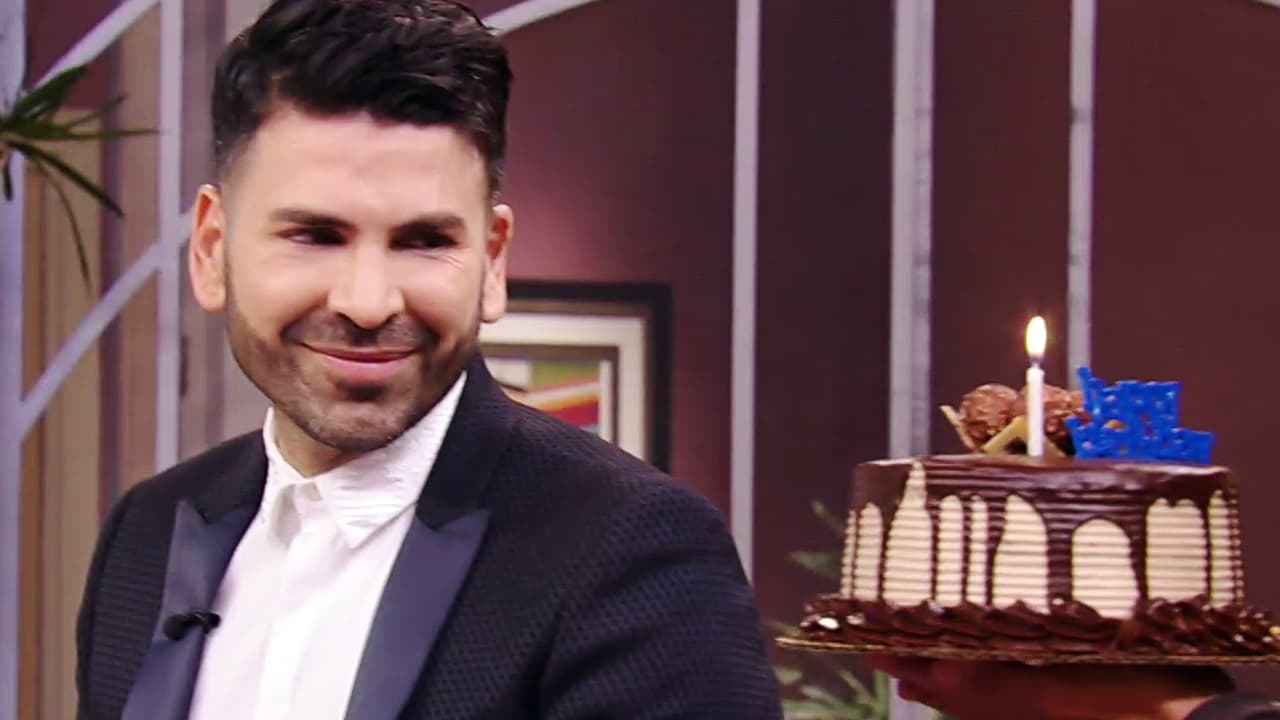 El presentador español cumplió 37 años y el panel de Sin Rollo le cantó el 'Happy Birthday' cuando Francisca Lachapel lo sorprendió con un pastel en pleno segmento.