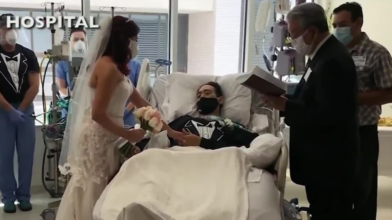 Ni la pandemia detuvo los planes de unir sus vidas. Carlos Muñoz se encuentra hospitalizado desde el mes pasado luego de dar positivo al coronavirus, y aunque los últimos exámenes arrojan resultado negativo, sigue luchando por recuperarse. Como un incentivo extra, Carlos y su novia se casaron en el nosocomio, con doctores y enfermeras de testigos.
