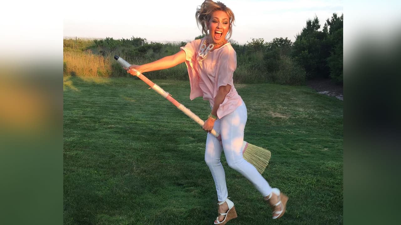 Nuestra querida Thalía publicó esta simpática foto, donde se le ve montada en una escoba, lista para volar.