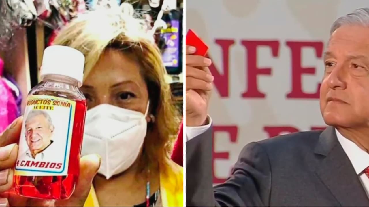 Andrés Manuel López Obrador ha expresado en más de una ocasión que se protege del coronavirus con una imagen religiosa que le regalaron. Y ni tardos ni perezosos, comerciantes del popular mercado de Sonora llevaron el amuleto a sus vitrinas, pero le agregaron una esencia ni más ni menos que ilustrada con la fotografía del mandatario mexicano.