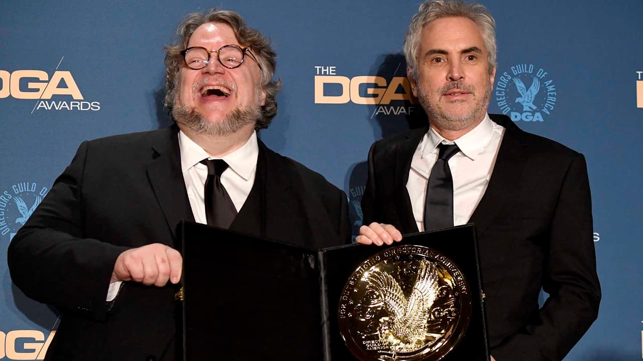 El director mexicano sigue sumando reconocimientos por 'Roma' y en esta ocasión se llevó el premio a Mejor Director de una película, en los Premios del Sindicato de Directores (DGA Awards). Alfonso Cuarón lució muy emocionado de recibirlo de su colega, amigo y compatriota Guillermo del Toro.