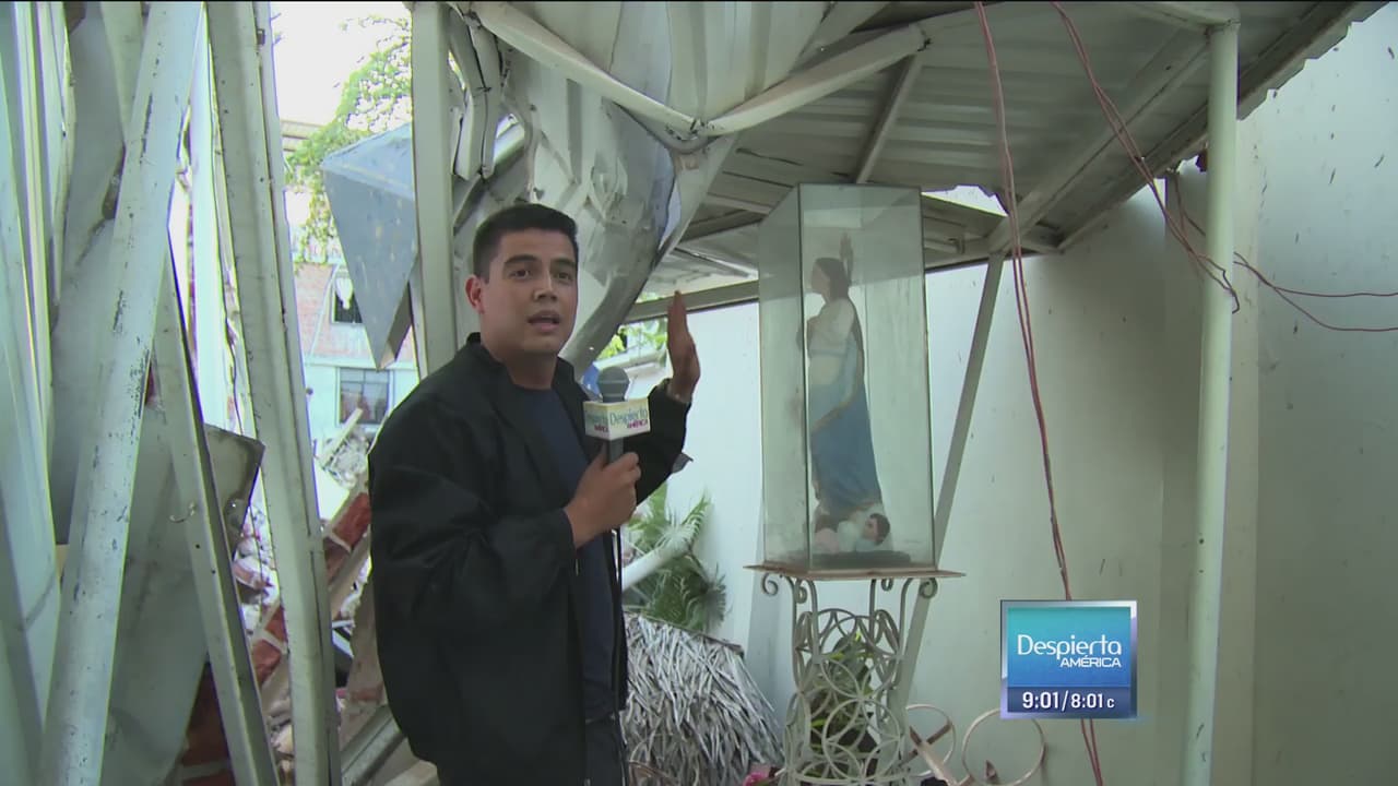 Orlando Segura visitó la estatua de la Virgen de la Luz en Portoviejo en Ecuador, donde el terremoto derrumbó edificios enteros, pero la figura quedó intacta.