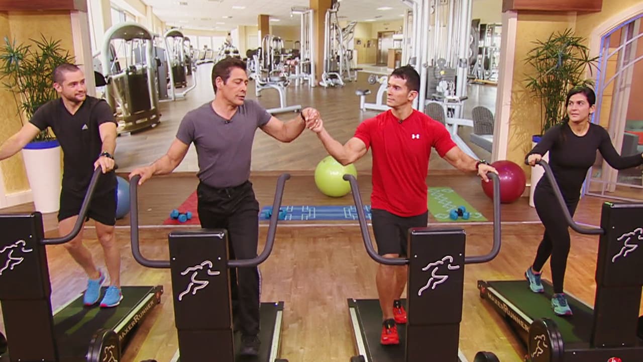 Johnny sudó la gota gorda al hacer ejercicio en esta caminadora mecánica, donde el esfuerzo y los resultados son al doble.