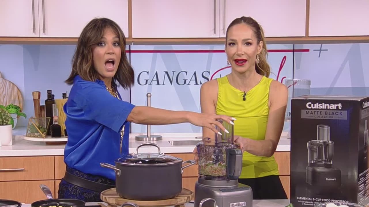 Mónica Pasqualotto y Karla Martínez nos trajeron las mejores ofertas en Gangas + Deals para ser grandes anfitriones en nuestras casas, pues mostraron productos indispensables en cada cocina, entre los que están un juego de sartenes y ollas, un procesador de alimentos, un kit de cubiertos y un paquete de vasos y copas.