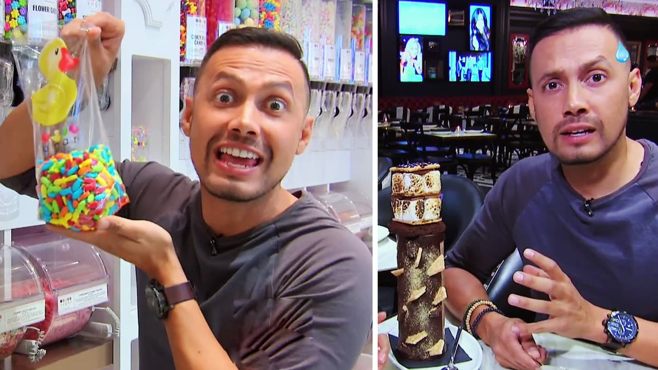 Visitar el restaurante 'Sugar Factory' es verdaderamente toda una experiencia de sabor, tal como lo comprobó nuestro Luis Sandoval, quien no dejó pasar la oportunidad de probar de todo un poco... ¡aunque terminara alterado de tanta azúcar!