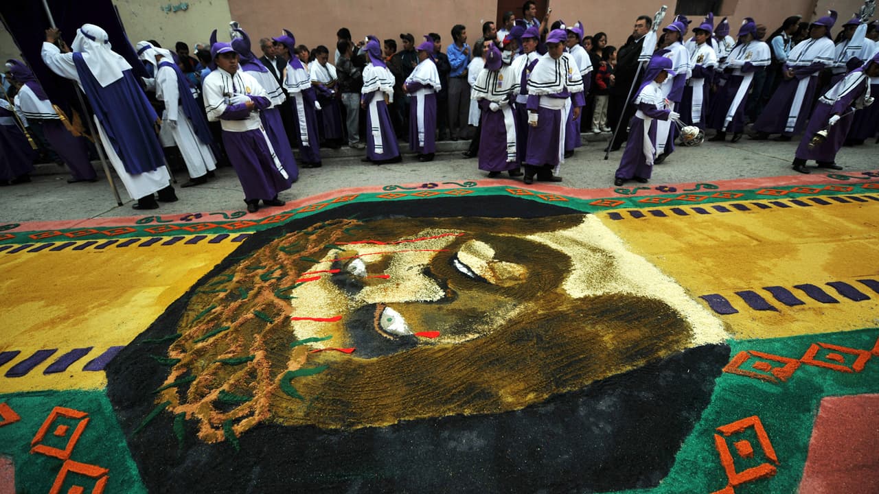 Maity Interiano recorrió las tradicionales alfombras de la Semana Santa en Antigua, Guatemala