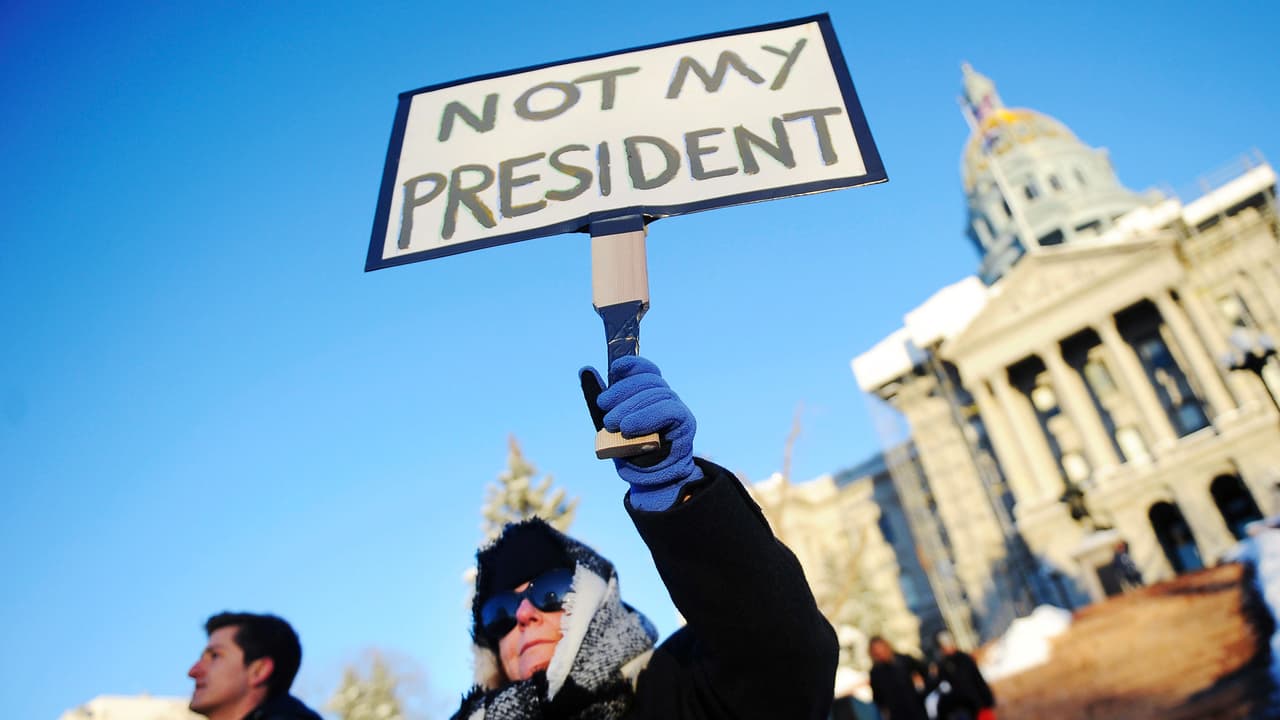 Manifestantes incitan a Colegio Electoral a bloquear ratificación de Trump como presidente